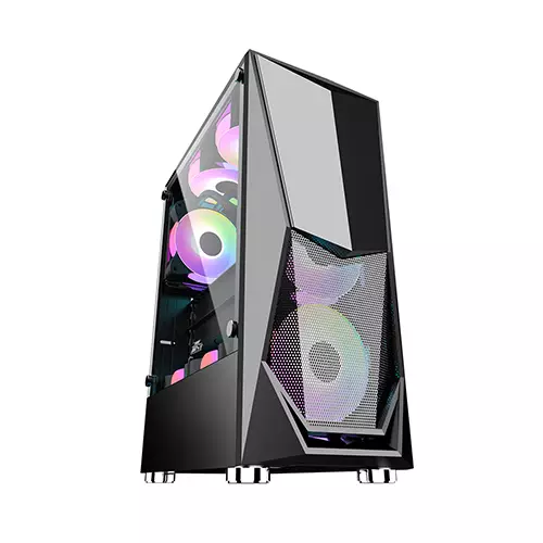 The 1STPLAYER DK-3 Gaming Case is a mid‑tower ATX/M‑ATX chassis that expertly balances practicality, airflow, and aesthetics, making it ideal for gaming builds and custom PC setups. Its front metal mesh panel maximises ventilation, while the tempered glass left side panel elegantly showcases internal components. Inside, the case supports up to two 3.5″ HDDs and one 2.5″ SSD, offering flexible storage for both high-capacity and high-speed drives. For cooling, it accommodates up to eight 120 mm fans — with mounts for three in front, two on top, one rear, and two at the bottom — and supports a 240 mm radiator on top for liquid-cooling setups. The DK-3 can fit CPU coolers up to 160 mm tall and graphics cards up to 305 mm long. Front-panel connectivity includes 1 × USB 3.0, 2 × USB 2.0, and HD audio ports, covering essential peripheral needs. With its airflow-focused design, tempered glass styling, ample storage and cooling support, and broad hardware compatibility, the DK-3 is a reliable and affordable choice for gamers, PC builders, and mid-range gaming or productivity rigs.