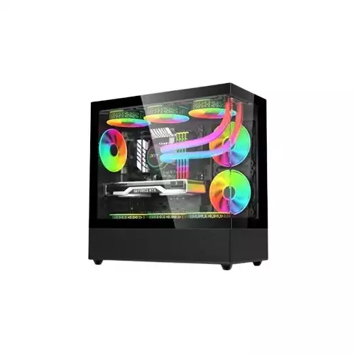 Acer V920B Mid-Tower Micro ATX Gaming Case is a stylish and functional chassis designed for gaming enthusiasts and PC builders in Bangladesh, available for purchase at Tech Land BD. This black-colored mid-tower case features a sleek design with a tempered glass left-side panel, offering a modern aesthetic while showcasing your internal components. It supports Micro ATX and ITX motherboards, making it versatile for compact yet powerful builds. The case excels in cooling performance, with support for multiple fan configurations, including 2x 120mm fans on the motherboard side, 3x 120mm fans on the PSU cover, and 1x 120mm fan or liquid cooler at the rear. Additionally, the top panel supports up to 3x 120mm fans, 2x 140mm fans, or a 360/280mm liquid cooler, ensuring optimal thermal management for high-performance systems. Storage options are flexible, accommodating 2x HDDs and 1x SSD or 1x HDD and 2x SSDs, while the I/O panel includes a Type-C port, USB 3.0, USB 2.0, and HD audio for convenient connectivity. With a maximum GPU length of 400mm and CPU cooler height of 165mm, the case is compatible with most high-end components. Measuring 425x210x440mm, it provides ample space for building a robust gaming rig. Note that this product does not include a built-in power supply and comes with no warranty. Visit Tech Land BD to purchase the Acer V920B and elevate your gaming setup with its perfect blend of style, functionality, and performance.
