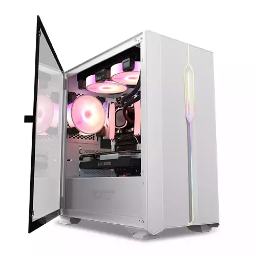 Aigo DarkFlash DLM23 Mini Tower Tempered Glass Micro-ATX Case (White)