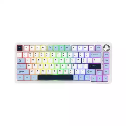 The Ajazz AK820 MAX Plus Tri-Mode Wireless Mechanical Keyboard is a powerful and stylish 75% keyboard (82 keys + 1 knob) designed for gamers, professionals, and keyboard enthusiasts. With its hot-swappable Daydream Switches, customizable RGB lighting, and Tri-Mode connectivity (Wired, 2.4GHz Wireless, Bluetooth 5.1), this keyboard delivers outstanding performance and versatility. The Daydream Switches provide smooth keystrokes with excellent tactile feedback, perfect for both gaming and typing. Its hot-swappable PCB allows users to swap switches without soldering, making customization effortless. The PBT keycaps ensure durability, a textured feel, and resistance to fading. Featuring Tri-Mode connectivity, the AK820 MAX Plus allows easy switching between devices. Use USB Type-C for a stable connection, 2.4GHz wireless for low-latency gaming, or Bluetooth 5.1 for convenience. Compatible with Windows, Mac, and Android, it’s an excellent choice for multi-platform users. With 16 preset RGB effects and music sync mode, the keyboard enhances your setup’s aesthetics. The south-facing RGB LEDs provide bright, customizable lighting. Powered by an 8000mAh battery, it offers long-lasting wireless performance, reducing the need for frequent recharging. The aluminum alloy frame ensures a sturdy build, while the ergonomic 75% layout saves desk space without compromising functionality.