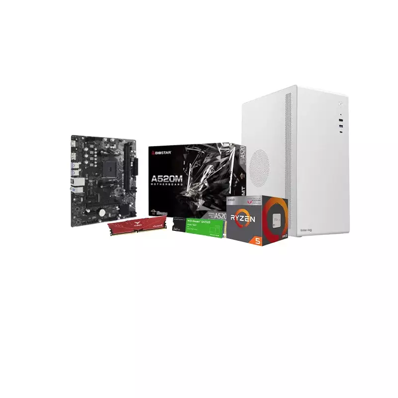 The AMD Ryzen 5 2400G Biostar A520MS Motherboard 8GB RAM 240GB SSD Budget PC, powered by the AMD Ryzen 5 2400G processor, Biostar A520MS motherboard, 8GB of TEAM T-FORCE VULCAN Z RED RAM clocked at 3200MHz, and a lightning-fast WESTERN DIGITAL GREEN SN350 240GB M.2 NVME GEN3 SSD. This powerhouse of a PC is perfect for both work and play, offering seamless multitasking and smooth gaming performance with the integrated Radeon RX Vega 11 Graphics. The compact and stylish VALUE-TOP V200CW MICRO ATX WHITE MINI TOWER CASING with PSU provides ample space for future upgrades while adding a touch of elegance to your setup. Whether you're tackling demanding tasks or immersing yourself in the latest games, this budget-friendly PC delivers exceptional performance and reliability without breaking the bank. Upgrade your computing experience today with this unbeatable desktop PC configuration! Available now at your nearest retailer.Secure your AMD Ryzen 5 2400G Biostar A520MS Motherboard 8GB RAM 240GB SSD Budget PC from Tech Land BD today.