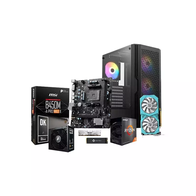 The AMD Ryzen 5 5500 MSI B450M-A Gaming PC featuring the GTX 1660 Ti 6GB graphics card. The AMD Ryzen 5 5500 processor, with 6 cores and 12 threads, delivers exceptional multitasking capabilities for a seamless gaming experience. Paired with the MSI B450M-A PRO MAX II motherboard, designed for stability and compatibility, this gaming PC is ready to tackle the latest titles. The PELADN GTX 1660 Ti 6GB graphics card, with 6GB GDDR6 VRAM and dual fans, ensures smooth visuals and stunning graphics. Boost your gaming performance with 16GB of AITC KINGSMAN KSD4 DDR4 RAM, clocked at 3200MHz, providing speed and responsiveness. The BIWINTECH NX500 256GB PCIe M.2 NVMe SSD offers rapid storage access, reducing load times and enhancing overall system responsiveness. With a 1STPLAYER DK5.0 PS-500DK 500W 80 PLUS Bronze Certified Full Modular Power Supply, this gaming rig ensures efficient power delivery, while the ANTEC AX20 ELITE Mid-Tower ATX Gaming Case adds a touch of style with its elite design and ample airflow. Immerse yourself in the gaming world with this powerful, yet affordable, AMD Ryzen 5 5500 gaming PC.| Processor | |