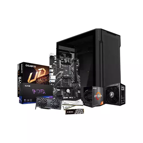 AMD Ryzen 5 5600 GIGABYTE B450MK 16GB RAM 512GB SSD Gaming PC, designed for gamers and content creators alike. At its core, this system features the AMD Ryzen 5 5600 6-core, 12-thread AM4 processor with a base clock of 3.5 GHz, offering smooth multitasking and high-speed gaming. Paired with the GIGABYTE B450M K Ultra Durable DDR4 Micro ATX motherboard, it ensures stability, reliability, and future upgrade potential. Memory and storage are optimized for speed and efficiency, with 16GB (2x8GB) DDR4 3200MHz AITC Kingsman RAM equipped with heatsinks for better thermal management, and a 512GB NEO FORZA NVMe M.2 PCIe Gen3x4 SSD delivering ultra-fast boot times, quick game load speeds, and ample storage for your applications and media. The system is housed in a stylish GIGABYTE C102 Glass Mid Tower ATX case, providing excellent airflow and a modern aesthetic, while the 1STPLAYER DK5.0 500W 80 Plus Bronze Non-Modular PSU ensures stable and reliable power delivery. Whether gaming, streaming, or working on creative projects, this Ryzen 5 5600 Gaming PC provides high performance, durability, and efficiency, making it an ideal choice for PC enthusiasts in Bangladesh seeking a complete ready-to-use gaming rig.