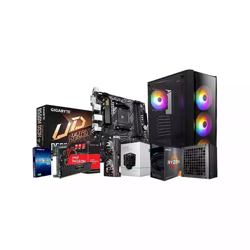 The AMD Ryzen 5 5600 Gigabyte B550M Motherboard 16GB RAM 1TB SSD Gaming Desktop PC with Graphics, a powerhouse designed to elevate your gaming experience to new heights. Powered by the AMD Ryzen 5 5600 processor, boasting 3.5 GHz, 6 cores, and 12 threads, this PC delivers lightning-fast performance for seamless gameplay. Paired with the Gigabyte B550M DS3H AMD Motherboard, you can expect exceptional stability and reliability. Immerse yourself in stunning visuals with the Sapphire PULSE AMD Radeon RX 6600 8GB Gaming Graphics Card, ensuring smooth rendering of even the most demanding games. Keeping your system cool under pressure is the Deepcool AK4DD Zero Dark CPU Cooler, while the Corsair Vengeance LPX DDR4 RAM (16GB total) ensures smooth multitasking and lightning-fast response times. Store all your games and files on the lightning-fast GIGABYTE Gen3 2500E NVMe1.3 1TB SSD. With the Deepcool PK500D 500W 80 Plus Bronze Certified Power Supply providing reliable power, and the 1stPlayer V4/V4-G Fire Dancing ATX Case adding a touch of style, this gaming desktop PC is the ultimate choice for gamers seeking uncompromising performance and aesthetics. Elevate your gaming experience today with this powerhouse desktop PC.Secure your AMD RYZEN 5 5600 GIGABYTE B550M Motherboard 16GB RAM 1 TB SSD Gaming Desktop PC with Graphics from Tech Land BD today.
