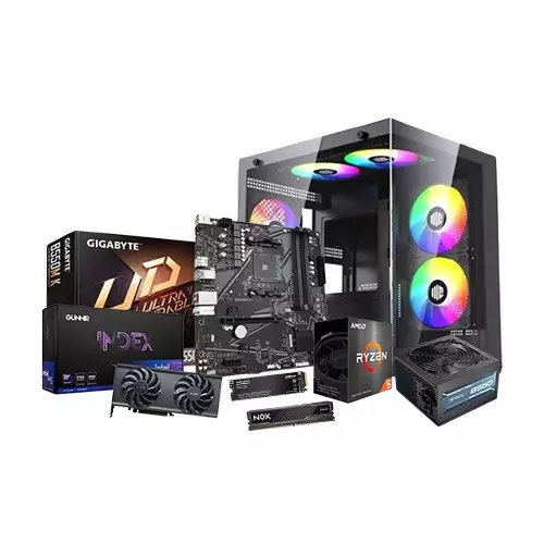 Gaming PC features the powerful AMD Ryzen 5 5600 3.5 GHz processor with 6 cores and 12 threads, ensuring smooth and efficient performance across all applications. Paired with the GIGABYTE B550M K Micro ATX motherboard, it provides advanced connectivity options and supports future upgrades. The DAHUA C900 512GB NVMe M.2 SSD delivers ultra-fast storage speeds for quick boot times and seamless data transfers, while the Apacer NOX 8GB 3200MHz DDR4 RAM ensures smooth multitasking. Antec Atom B550 80 Plus Bronze 550W power supply powers the system, providing reliable and efficient power delivery. The Gunnir B580 Index 12GB GDDR6 graphics card takes gaming visuals to the next level, enabling stunning graphics and immersive gameplay. All these components are housed in the sleek Maxcool Inferno MC5 Micro ATX Gaming Computer Case, which combines functionality with style.