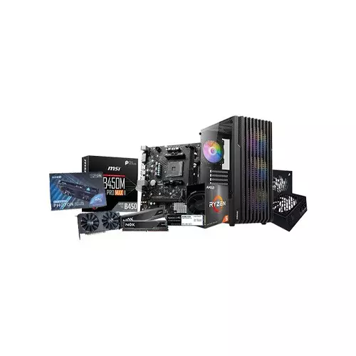 The AMD Ryzen 5 5600 MSI B450m-a Pro Motherboard Gaming PC is a high-performance system designed for gamers and content creators. It combines the powerful AMD Ryzen 5 5600 processor with the MSI B450m-a Pro Max II motherboard, 16GB of RAM, a 256GB SSD for fast storage, and the Intel Arc A380 6GB gaming graphics card, delivering seamless performance for demanding games and applications.
