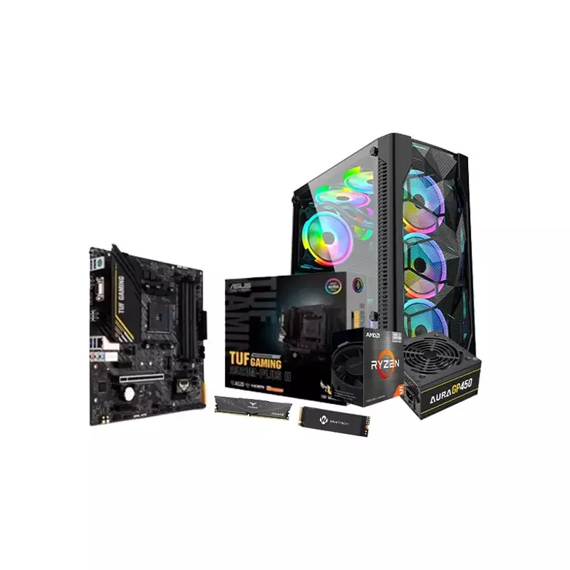 The AMD Ryzen 5 5600G A520M-PLUS II AM4 16GB RAM 512GB SSD Desktop PC, a powerhouse designed for Desktop-conscious gamers and multitaskers. Powered by the AMD Ryzen 5 5600G processor with Radeon Graphics, this PC delivers exceptional performance with 6 cores and 12 threads, ensuring smooth multitasking and immersive gaming experiences. The ASUS TUF GAMING A520M-PLUS II AM4 Micro-ATX motherboard provides a stable foundation, featuring gaming-centric design and compatibility with the latest AMD processors. Boosting the system's memory, the TEAM T-FORCE VULCAN Z 8GB 3200MHz DDR4 Gaming RAM (doubled for 16GB total) ensures seamless multitasking and efficient handling of resource-intensive applications. Storage is elevated with the lightning-fast BIWINTECH NX500 512GB PCIe M.2 NVMe SSD, providing ample space for your games, software, and files while delivering rapid data access speeds. The GAMDIAS AURA GP450 450W Power Supply ensures a reliable and efficient power delivery, while the OVO E335D Mid Tower Gaming RGB Case adds a touch of style with its RGB lighting, all while providing optimal airflow for cooling. This Desktop-friendly desktop PC is a perfect blend of performance and affordability, making it an ideal choice for entry-level gamers, content creators, and everyday users. Whether you're gaming, streaming, or tackling productivity tasks, the AMD Ryzen 5 5600G A520M-PLUS II AM4 16GB RAM 512GB SSD Desktop PC stands ready to deliver a responsive and enjoyable computing experience. Upgrade your setup with this reliable and stylish desktop, available now for unbeatable value.