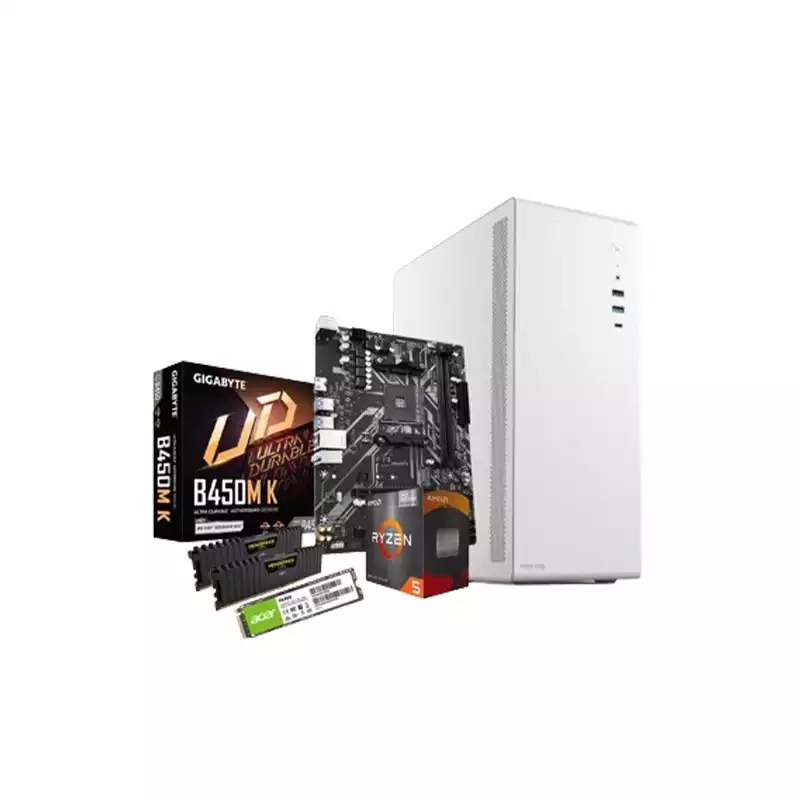 The AMD RYZEN 5 5600G Gigabyte B450M K Motherboard 16GB RAM 256GB SSD Budget PC The GIGABYTE B450M K AMD AM4 Ultra Durable DDR4 Micro ATX Motherboard serves as the backbone of this budget-friendly system. Known for its durability and stability, this motherboard supports a range of features and connectivity options, ensuring reliable performance and future-proofing your system for potential upgrades.This PC is equipped with 16GB of Corsair Vengeance LPX DDR4 3200MHz RAM, arranged in two 8GB modules. This high-speed memory configuration allows for seamless multitasking, fast data processing, and smooth operation of applications, making it perfect for gaming, productivity, and everyday tasks.