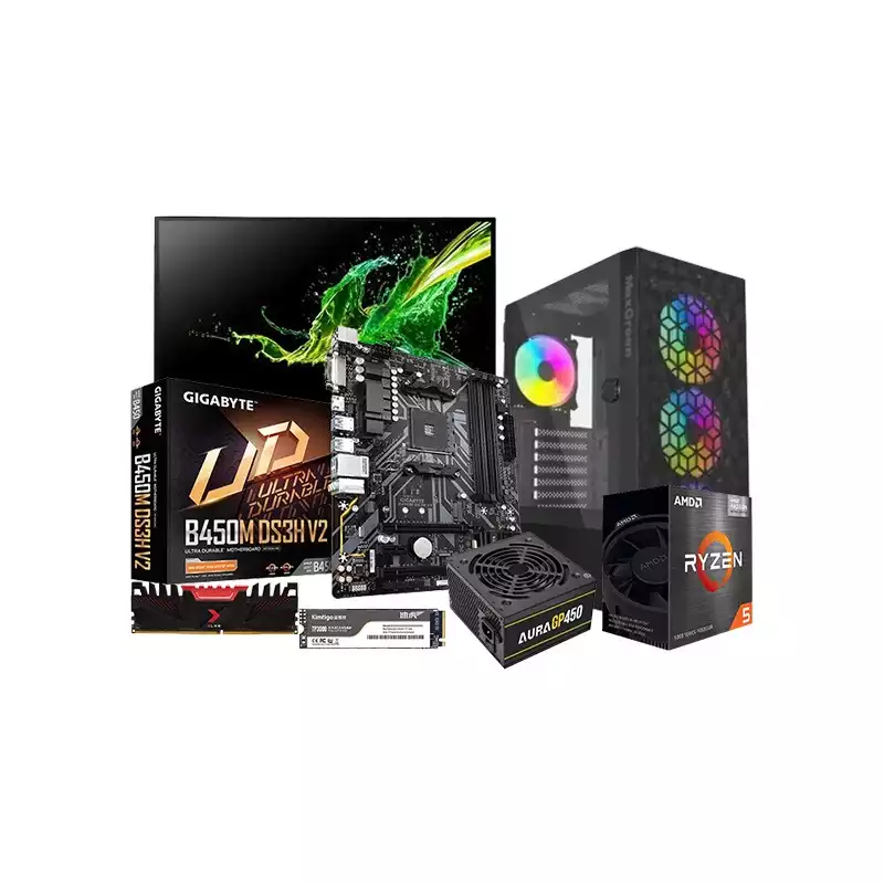 AMD Ryzen 5 5600G GIGABYTE B450M Motherboard 16GB RAM 512GB SSD With ACER KA222Q H 21.5 Inch Monitor Budget PC