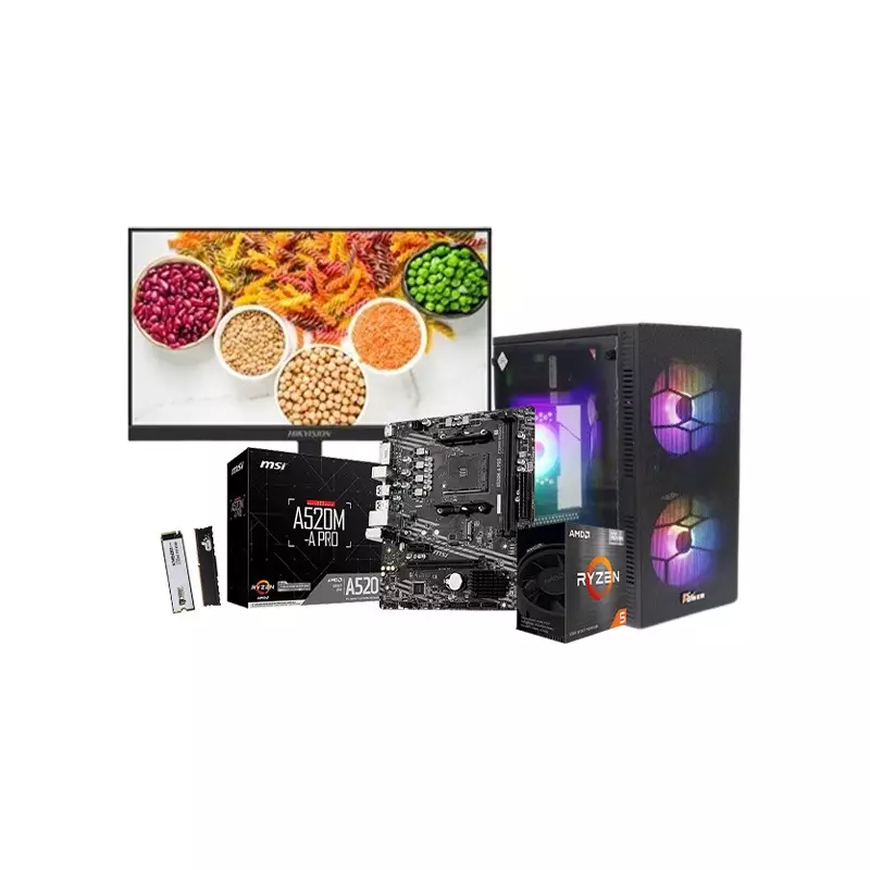 The AMD Ryzen 5 5600G MSI A520M-A PRO Motherboard 8GB RAM 256GB SSD Budget PC with Monitor, your gateway to powerful computing at an affordable price, is now available for purchase. This budget-friendly PC packs a punch with its AMD Ryzen 5 5600G processor, featuring 6 cores and 12 threads, coupled with Radeon Graphics for stunning visuals and smooth performance. Paired with the MSI A520M-A PRO AM4 AMD ATX Motherboard, you'll experience seamless compatibility and reliable connectivity for all your computing needs. With 8GB of PATRIOT SIGNATURE LINE PREMIUM DDR4 RAM clocked at 3200MHz, multitasking becomes a breeze, ensuring smooth operation even during demanding tasks. Store your files, games, and applications with blazing speed on the AITC KINGSMAN KM600 ULTRA 256GB M.2 NVME PCIE SSD, providing ample storage and rapid data access. Encased in the PC Power SPIDER WEB MESH PP-X2601 ARGB Gaming Case, this PC not only delivers performance but also stands out with its eye-catching design and customizable RGB lighting. And for an immersive viewing experience, the package includes the Hikvision DS-D5022F2-1P1 21.5 inch Full HD IPS 100HZ 1MS Borderless Monitor, offering vibrant colors, smooth motion, and minimal bezels for an expansive display. Whether you're gaming, working, or streaming content, this budget PC delivers exceptional performance without breaking the bank. Upgrade your computing setup today and unleash your potential with the AMD Ryzen 5 5600G MSI A520M-A Motherboard 8GB RAM 256GB SSD Budget PC with Monitor.| Processor | |