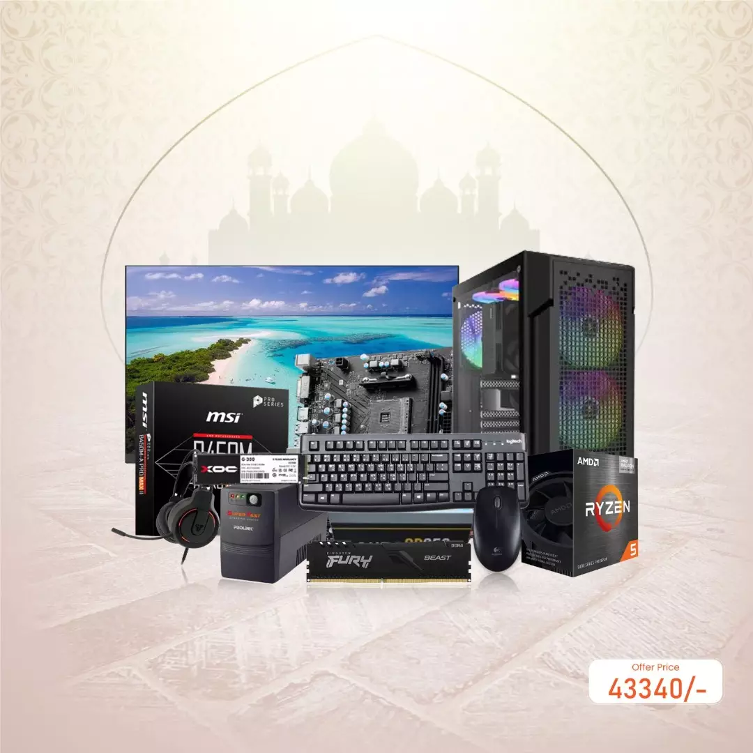 Unlock superior multitasking, gaming, and productivity with this AMD Ryzen 5 5600GT-powered desktop PC, featuring a 6-core powerhouse and a vibrant 22-inch FHD monitor. Built for gamers, creators, and power users, this system combines modern hardware with future-ready flexibility.