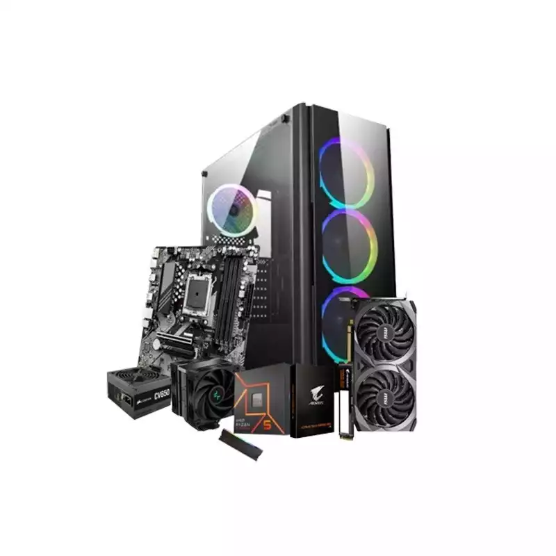 The AMD Ryzen 5 7500F Gigabyte B650M K Motherboard 16GB RAM 1TB SSD Desktop Gaming PC with 12GB Graphics Card package available at TechLand BD. This powerhouse setup features the AMD Ryzen 5 7500F processor, boasting a blazing 5.0GHz clock speed and six efficient cores, perfect for handling intensive tasks and gaming alike. Paired with the robust Gigabyte B650M K AM5 micro-ATX motherboard, this combination ensures top-notch performance and future-proof compatibility with DDR5 memory. The system includes a substantial 16GB of Gigabyte AORUS RGB DDR5 RAM running at a swift 6000MHz, ensuring smooth multitasking and fast load times for applications and games. Storage needs are met with the 1TB Gigabyte AORUS Gen4 5000E NVMe M.2 SSD, delivering rapid data access speeds and ample space for your files, games, and applications. For gaming enthusiasts, the MSI GeForce RTX 3060 VENTUS 2X OC graphics card with 12GB of GDDR6 memory offers incredible graphics performance, making it easy to enjoy the latest games at high settings. The DEEPCOOL AK400 ZERO DARK PLUS CPU cooler ensures your processor stays cool under pressure, maintaining optimal performance even during prolonged use. Powering this beastly setup is the Corsair CV Series CV650, a reliable 650-watt power supply that is 80 Plus Bronze certified for efficiency and durability. All these components are housed in the stylish Safeway Tornado MTG-1921 Mid Tower ATX gaming case, which provides excellent airflow and ample space for future upgrades. This configuration is perfect for gamers, content creators, and power users who demand high performance and reliability. Whether you are rendering videos, designing graphics, or playing the latest AAA titles, this setup will not disappoint. Available exclusively at TechLand BD, you can be assured of getting a premium product with excellent after-sales support. With TechLand BD's commitment to quality and customer satisfaction, your investment in this high-end PC setup is guaranteed to be worthwhile. Experience unmatched performance and seamless multitasking with the AMD Ryzen 5 7500F Gigabyte B650M K Motherboard 16GB RAM 1TB SSD with 12GB Graphics Card bundle, only at TechLand BD. Visit TechLand BD today to make this ultimate computing package yours.Secure your AMD RYZEN 5 7500F Gigabyte B650M K Motherboard 16GB RAM 1TB SSD Desktop Gaming PC with 12GB Graphics Card from Tech Land BD today.