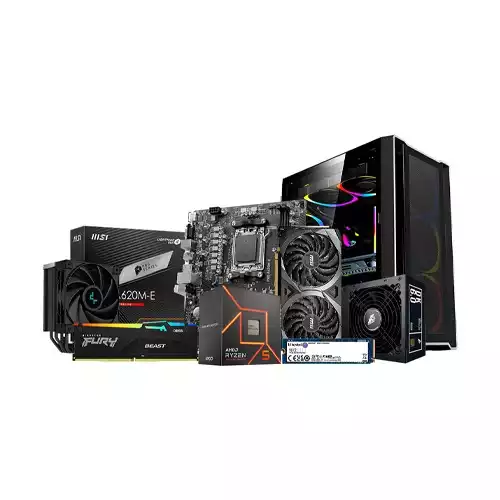 The AMD Ryzen 5 7500F MSI Pro A620M-E Motherboard Desktop PC, now available at Techland BD. This high-performance system is expertly designed to provide unmatched speed, breathtaking graphics, and effective multitasking. The AMD Ryzen 5 7500F processor, which has six cores and an amazing clock speed of 5.0GHz, is at the core of this beast. Smooth and responsive performance is guaranteed by this processor, whether you are gaming, streaming, or working on heavy tasks. Make your computer and gaming more efficient by using the MSI VGA Card RTX 3060 Ventus 2X 12GB. This GPU's state-of-the-art graphics technology produces lifelike images and effortlessly handles the newest games, giving players an immersive gaming experience. In addition to the robust processor and graphics card, we installed 16GB of 6000MHz Kingston Fury RGB DDR5 RAM in this desktop. In addition to providing a stylish touch, the RGB lighting guarantees fluid multitasking and application transitions. Since storage speed is important, a Kingston NV2 500GB PCIe Gen4 NVMe M.2 SSD has been included. Get blazing-fast load times and data access to help you remain competitive in the gaming world. The foundation of this system is the MSI Pro A620M-E DDR5 AMD AM5 Motherboard, which offers stability, dependability, and support for the newest DDR5 RAM technology. With the help of this motherboard, you can fully utilize the capabilities of your components and enjoy a smooth computing experience. The Deepcool AK400 Zero Dark Plus CPU Cooler regulates temperatures, providing effective cooling for prolonged gaming sessions and taxing tasks. All components receive dependable and consistent power from the 1st Player DK PS-600AX Full Modular 80 Plus Bronze power supply, guaranteeing peak performance. All of these state-of-the-art parts are contained in the elegant black 1st Player T4 TG Mid Tower Case. In addition to ensuring an aesthetically pleasing setup, the complete modular design and 80 Plus Bronze certification also ensure an energy-efficient and well-organized system. If you are looking for the best setups for productivity and gaming, Techland BD is the place to go. This AMD Ryzen 5 7500F MSI Pro A620M-E Motherboard Desktop PC is now available; upgrade your computing experience. Techland BD, where power and precision meet, will help you step up your game and explore new frontiers.