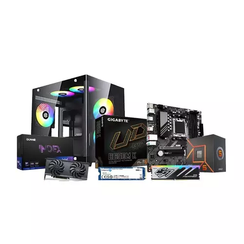This high-performance gaming desktop combines AMD's latest Ryzen 5 7500F processor with the powerful Gunnir B580 Index 12GB graphics card, delivering exceptional 1440p gaming performance. Built on the new AM5 platform with DDR5 memory, this future-proof system offers blazing-fast speeds for gamers and content creators alike.