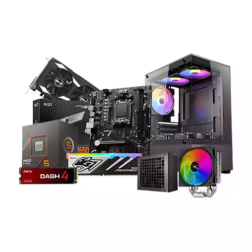 AMD Ryzen 5 8400F PRO B650M-E Gaming PC is a high-performance desktop built for gamers, content creators, and professionals who demand powerful processing, fast storage, and stunning graphics in one complete package. Powered by the AMD Ryzen 5 8400F processor with 6 cores and 12 threads, this PC delivers seamless multitasking, smooth gaming performance, and efficient handling of heavy applications. The system is built on the MSI PRO B650M-E DDR5 AM5 mATX motherboard, offering stability, expandability, and support for the latest DDR5 memory. Equipped with 16GB APACER PANTHER 6000MHz DDR5 RGB RAM, it ensures lightning-fast data access, responsiveness, and enhanced gaming performance. Storage is handled by a 512GB NCX Dash 4 PCIe Gen 4.0 NVMe SSD, offering ultra-fast boot times, quick game loading, and ample space for applications. For graphics, it features the ASUS DUAL GeForce RTX 3050 OC Edition 8GB, delivering realistic visuals, ray tracing support, and smooth gameplay at Full HD and QHD resolutions. Cooling is managed by the Thermalright Assassin X 120 R Digital ARGB CPU Cooler, maintaining optimal CPU temperatures under heavy loads, while the Antec VCX100M ARGB M-ATX Mini Tower case provides excellent airflow, stylish design, and ARGB aesthetics. Powering the system is the DeepCool PF500X 500W 80 Plus Bronze Non-Modular ATX Power Supply, ensuring stable and reliable energy efficiency for all components. With its well-balanced combination of CPU, GPU, RAM, and SSD, this gaming PC excels in modern AAA games, streaming, content creation, and everyday productivity. Backed by a 3-year product base warranty, users can enjoy peace of mind along with reliable performance. In Bangladesh, this gaming PC is available at Tech Land BD, a trusted retailer known for authentic products, competitive pricing, and excellent after-sales support. Customers can purchase the system at the best price in Bangladesh, making it an ideal choice for gamers and professionals seeking high-performance computing without compromise. The combination of DDR5 memory, Gen 4 NVMe SSD, and RTX 3050 graphics ensures this gaming PC is ready for both current and upcoming software demands, offering exceptional value, speed, and reliability for serious users.