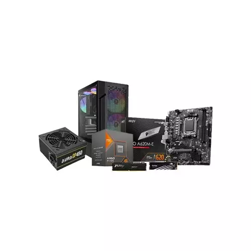AMD Ryzen 5 8500G MSI PRO A620M-E DDR5 8GB RAM 512GB SSD Desktop PC is a high-performance and budget-friendly system designed for home, office, and casual gaming. Featuring the powerful AMD Ryzen 5 8500G processor, this 6-core, 12-thread CPU with Radeon Graphics ensures smooth multitasking, faster processing speeds, and reliable integrated graphics performance. Whether you’re handling productivity tasks, video editing, or light gaming, this PC is built for efficiency. The system is equipped with the MSI PRO A620M-E DDR5 motherboard, ensuring stability and high-speed connectivity. With 8GB Kingston Fury Beast DDR5 RAM (5600MHz), users can enjoy faster load times and seamless multitasking. The Kimtigo TP5000 512GB NVMe PCIe Gen4x4 SSD delivers ultra-fast storage performance, reducing boot times and enhancing overall system responsiveness. Housed in the Gamdias AURA GC7 RGB ATX Mid-Tower Gaming Case with a 450W PSU, this desktop offers a sleek and stylish design with RGB lighting while maintaining efficient cooling and durability. Whether for work or casual gaming, this PC is an excellent investment for those looking for a future-proof and affordable computing solution. Get the AMD Ryzen 5 8500G MSI PRO A620M-E DDR5 8GB RAM 512GB SSD Desktop PC today from Tech Land BD at the best price and experience a high-performance system for all your computing needs!