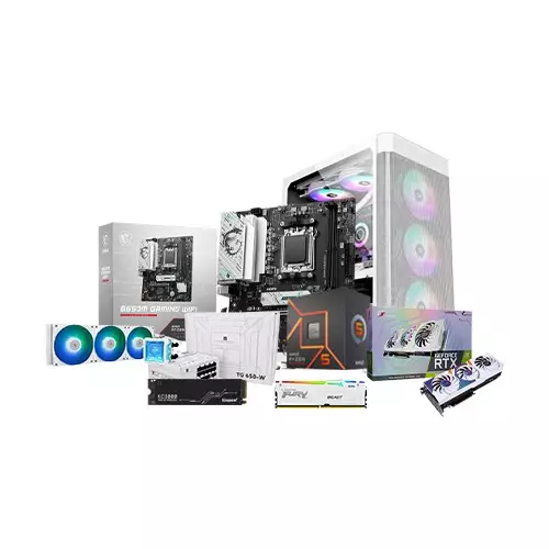 AMD RYZEN 5 7500F Desktop PC is a powerhouse designed for gamers and creative professionals alike, equipped with a high-performance Ryzen 5 processor and MSI B650M motherboard. This desktop delivers fast processing, high-end graphics, efficient cooling, and ample storage, making it a well-rounded choice for intensive tasks and gaming.