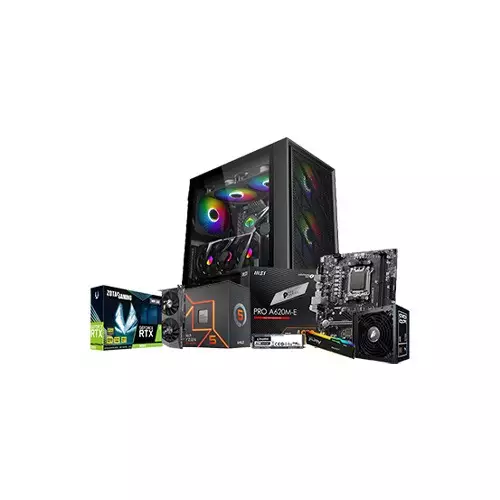 the AMD Ryzen 5 7500F Gaming PC, engineered for gamers and content creators who demand power, speed, and reliability. At its core, this desktop features the AMD Ryzen 5 7500F 6-core, 12-thread processor with clock speeds up to 5.0GHz, delivering lightning-fast processing for modern games, streaming, and productivity tasks. Paired with the MSI PRO A620M-E DDR5 AMD AM5 motherboard, this system offers excellent stability, upgrade flexibility, and support for the latest technologies. The system is equipped with 16GB Kingston Fury Beast DDR5 5600MHz RAM, providing high-speed memory for smooth multitasking and enhanced gaming performance. Storage is handled by a 250GB Kingston KC2500 NVMe PCIe SSD, ensuring ultra-fast boot times, rapid game load speeds, and ample space for your essential applications. For graphics-intensive tasks and immersive gaming, the PC includes a ZOTAC Gaming GeForce RTX 3060 Twin Edge 12GB GDDR6 graphics card, capable of handling AAA games, VR, and creative workloads with ease. Housed in the stylish 1STPLAYER AR-7G Mesh AR Series ATX Gaming Case, the system comes with 6 pre-installed ARGB fans, offering exceptional cooling, airflow, and eye-catching aesthetics. The 1ST Player DK PS-600AX Full Modular 80 PLUS Bronze Power Supply ensures reliable power delivery while supporting future upgrades. Whether you are gaming, streaming, or editing content, this desktop provides a stable and efficient platform to meet your needs. The AMD Ryzen 5 7500F Gaming PC is perfect for gamers who value speed, aesthetics, and performance. With high-quality components, advanced cooling, and expandability options, this PC delivers a premium experience both visually and technically. Its modular design allows for easy upgrades, making it a future-proof investment for years to come.
