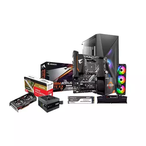 AMD RYZEN 7 5700X B550M AORUS ELITE AX 16GB RAM 1TB SSD Desktop PC is a powerhouse designed for gaming, content creation, and multitasking. With the AMD Ryzen 7 5700X processor at its core, this desktop is built for demanding workloads and high-end gaming. It features a reliable combination of the GIGABYTE B550M AORUS ELITE AX motherboard, a SAPPHIRE PULSE AMD Radeon RX 7600 Gaming OC graphics card, and 16GB of high-performance RAM, ensuring smooth performance in all scenarios. Additionally, it comes with a 1TB SSD for lightning-fast storage and a GAMDIAS Aura GL360 liquid cooler to keep the system cool during intense usage.