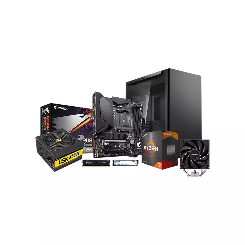 The AMD Ryzen 7 5700X Gigabyte B550M Aorus Motherboard 16GB RAM 500GB SSD Budget PC, a powerhouse designed for optimal performance and efficiency. Packed with the AMD Ryzen 7 5700X 8 Core 16 Thread AM4 Processor, this desktop PC ensures smooth multitasking and high-speed processing for both work and play. The Gigabyte B550M Aorus PRO-P Micro-ATX Motherboard provides a stable foundation, offering advanced features for seamless connectivity. To keep the system cool, the Deepcool AK400 CPU Cooler ensures efficient temperature management. With a total of 16GB Kingston Fury Beast DDR4 Desktop RAM clocked at 3200MHz, enjoy lightning-fast responsiveness and smooth multitasking capabilities. The Kingston NV2 500GB PCIe 4.0 NVMe SSD provides lightning-fast data access, delivering a snappy computing experience. The Antec Cuprum Strike CSK 650W 80 Plus Bronze Power Supply guarantees reliable and efficient power delivery, while the Deepcool Macube 110 BK Tempered Glass Mid-Tower ATX Gaming Case not only provides a sleek look but also ensures optimal airflow for your components. Whether you're a gamer, content creator, or professional, this budget-friendly desktop PC is crafted to meet your performance needs without breaking the bank. Elevate your computing experience with the AMD Ryzen 7 5700X Gigabyte B550M Aorus Motherboard 16GB RAM 500GB SSD Budget PC, available now to bring power and efficiency to your fingertips.