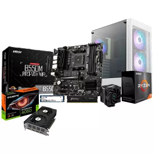 The AMD Ryzen 7 5700X MSI B550M PRO-VDH WIFI Motherboard 16GB RAM 1TB SSD Gaming PC, an epitome of cutting-edge performance and immersive gaming experiences, is now exclusively available at TechLand BD, bringing a new level of gaming prowess to enthusiasts in Bangladesh. At the core of this gaming powerhouse is the AMD Ryzen 7 5700X, an 8-core, 16-thread processor with a staggering performance level. The MSI B550M PRO-VDH WIFI AMD Motherboard provides a stable and feature-rich platform for this gaming rig, with built-in Wi-Fi adding versatility to your connectivity options. Paired with the powerful GIGABYTE GeForce RTX 4060 Windforce OC 8GB GDDR6 Graphics Card, this system delivers stunning visuals and real-time ray tracing for an immersive gaming experience. The DEEPCOOL AK400 Zero Dark Plus CPU Cooler ensures optimal temperature control, allowing for sustained high-performance gaming. With 16GB of Kingston Fury Beast 3200MHz DDR4 Desktop RAM, this system delivers lightning-fast responsiveness and smooth multitasking capabilities. Storage needs are met by the lightning-fast Kingston NV2 1TB PCIe 4.0 NVMe SSD, offering ample space for your games and applications. The Corsair CV Series CV650 650 Watt 80 Plus Bronze Certified Power Supply ensures reliable and efficient power delivery, keeping the system running smoothly. Encased in the stylish GAMDIAS Talos E3 Mesh Mid Tower Case, this gaming PC not only boasts top-tier performance but also stands out with its aesthetic appeal. Elevate your gaming experience with this high-performance PC, available at TechLand BD, your trusted destination for state-of-the-art gaming hardware and accessories in Bangladesh.