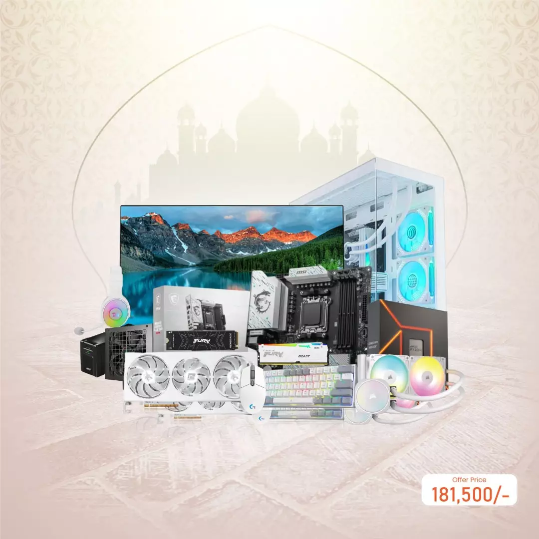 AMD RYZEN 7 7700 MSI B650M GAMING WIFI 16GB RAM 500GB SSD Gaming PC with RX 7800 XT Graphics is a high-performance gaming rig designed for serious gamers and professionals in Bangladesh. At its core is the AMD Ryzen 7 7700 processor, boasting 8 cores and 16 threads with a base clock of 3.8GHz, ensuring smooth multitasking, lightning-fast performance, and efficient handling of demanding applications and AAA games. Complementing the CPU is 16GB of Kingston Fury Beast DDR5 RAM at 6000MHz, providing seamless memory bandwidth for gaming, content creation, and high-speed computing. Storage is handled by a 500GB Kingston FURY Renegade PCIe 4.0 NVMe M.2 SSD, offering rapid boot times, near-instant application launches, and ample space for your essential games and software. The graphics power comes from the Powercolor Hellhound Spectral AMD Radeon RX 7800 XT 16GB GDDR6, which guarantees stunning visuals, smooth frame rates, and advanced features like ray tracing and AMD FidelityFX. Paired with the HP M22f 21.5-inch Full HD IPS monitor with 75Hz refresh rate and AMD FreeSync, you get crisp visuals, accurate colors, and tear-free gameplay. The system is cooled efficiently with the Corsair Nautilus 240 RS ARGB Liquid CPU Cooler, keeping temperatures low even during extended gaming sessions. Designed for immersive gaming, this PC comes housed in a PC Power Ice Tower Elite PP-GS500 ATX Desktop Gaming Case (White), providing excellent airflow, aesthetic appeal, and support for additional hardware upgrades. The system includes a Redragon K617 Fizz 60% Wired RGB Gaming Keyboard, Logitech G102 LightSync RGB Wired Mouse, and Redragon H350 Pandora RGB Wired Gaming Headset, delivering complete gaming peripherals for an integrated experience. Power is managed by the DeepCool PN850D 850W 80 Plus Gold Non-Modular PSU, ensuring stable and efficient energy delivery, while a UPS - Power Guard PG1200VA-CS 1200VA Offline UPS safeguards your PC from sudden power outages. Overall, the AMD RYZEN 7 7700 MSI B650M Gaming PC combines raw power, modern aesthetics, and advanced cooling to offer a desktop system capable of handling high-end gaming, streaming, content creation, and multitasking with ease. power.