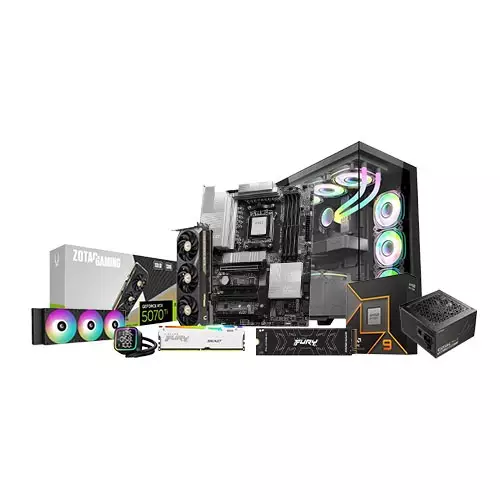 The AMD Ryzen 9 9900X processor features 12 cores and 24 threads, delivering exceptional multi-threaded performance for gaming, streaming, and professional workloads. The MSI PRO X870-P WIFI ATX motherboard supports DDR5 memory, PCIe Gen 5, and high-speed connectivity, making it a future-proof choice.With 32GB of Kingston Fury Beast RGB DDR5 6000MHz RAM, this PC ensures high-speed multitasking and gaming performance. The Kingston Renegade Fury 1TB PCIe Gen4 NVMe SSD provides blazing-fast read/write speeds, significantly reducing load times.The ZOTAC GAMING GeForce RTX 5070 Ti Solid Core OC 32GB GDDR7 GPU delivers stunning 4K gaming, real-time ray tracing, and AI-enhanced graphics. With DeepCool LD360 360mm liquid cooling, the CPU stays cool under intense workloads, ensuring optimal performance and longevity.For power, the Antec GSK ATX3.1 750W 80 PLUS Gold Full Modular PSU delivers efficient and stable power. The 1ST PLAYER MI8 Mid-Tower Gaming Case offers excellent airflow, RGB lighting, and a stylish design.