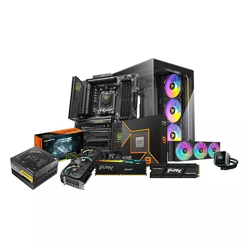 For memory and storage, the build includes 32GB Kingston Fury Beast DDR5 6000MHz RAM, providing lightning-fast performance for gaming and professional workloads, along with a Kingston FURY Renegade 2TB NVMe Gen4x4 SSD, offering high-speed storage for quick boot times and ultra-fast game loading. Powering this setup is the ANTEC NE1000G M 1000W ATX Full Modular Power Supply, ensuring stable power delivery for the system's high-performance components. Housing everything is the Antec C5 BLACK ARGB CONSTELLATION SERIES Mid-Tower Case, offering great airflow, a sleek design, and customizable RGB lighting.