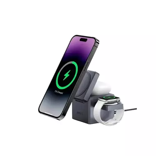 Anker 3-in-1 Cube MagSafe Charger is the ultimate charging solution for Apple users, designed to charge your iPhone, Apple Watch, and AirPods simultaneously. With a sleek and compact design, this charger ensures convenience and efficiency while keeping your devices powered up. The MagSafe technology provides secure and stable charging, making it a must-have accessory for Apple enthusiasts.