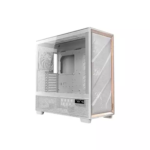 Antec Flux Pro E-ATX Full Tower Gaming Case (White) features sturdy steel, plastic, glass, and wood construction, providing both durability and a unique aesthetic appeal. With support for E-ATX, ATX, Micro-ATX, and ITX motherboards, it offers versatility for various build configurations. The case measures 530 x 245 x 545 mm and weighs 13.60 kg, making it a substantial option for high-end builds. It supports an impressive range of radiators and fans, with options for up to 360mm radiators at the power supply shroud, top, and front, ensuring excellent cooling potential. Its pre-installed fans include three 140mm Tranquil PWM fans at the front, two 120mm reverse fans on the PSU shroud, and one 140mm fan at the rear. With multiple drive bays and clearance for GPUs up to 455mm, the case offers unparalleled storage and component compatibility.