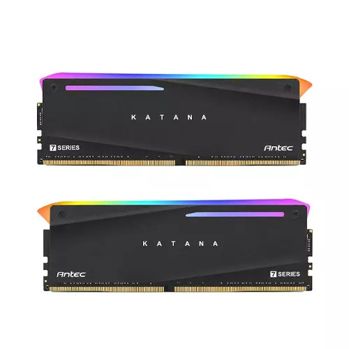 Antec Katana ARGB Desktop RAM Without the ARGB Lighting, the blade-shaped silver lighting bar on top shows a metallic shine. Distinctive Aluminum Heatsink Great thermal conductivity to make sure the superb memory cooling performance even when overclocked.