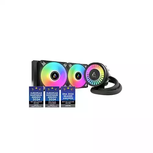 The Arctic Liquid Freezer III 240MM Liquid CPU Cooler (Black) offers a highly efficient cooling solution for your CPU, combining sleek design with outstanding thermal performance. This 240mm AIO cooler features PWM-controlled fans, a premium copper cold plate, and RGB lighting, making it a top choice for gamers, overclockers, and PC enthusiasts who demand both aesthetics and performance. With seamless compatibility across Intel and AMD sockets and future-proof support for upcoming processors, this cooler is designed to maintain your system's stability during intense workloads and keep your processor running at optimal temperatures.