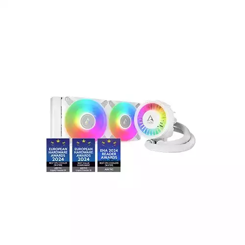 This cooler comes with a 240mm radiator and two high-performance P12 PWM fans that provide airflow between 200 and 1800 rpm. This ensures efficient cooling even under heavy loads, with a fan airflow of 56.30 cfm and air pressure of 2.20 mmH2O. Its cold plate is made from copper with micro-skived fins, optimizing heat dissipation for demanding processors like Intel’s 1700 and AMD's AM5 and AM4 sockets. The integrated VRM fan (400-2500 rpm) and the pump (800-2800 rpm) offer added cooling for voltage regulation modules and dynamic coolant flow, making sure your system remains stable. The Arctic Liquid Freezer III 240MM also features addressable RGB lighting with a 3-Pin A-RGB connector, allowing for stunning visual effects that are customizable with most motherboard software.