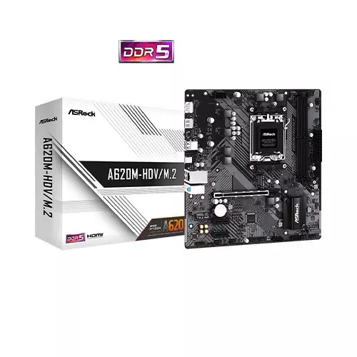 The ASRock A620M-HDV/M.2 DDR5 AM5 Micro ATX AMD Motherboard is a reliable and high-performance motherboard designed to support AMD's latest Ryzen 9000, 8000, and 7000 series processors. It offers cutting-edge technology and a compact form factor suitable for a variety of PC builds, making it an ideal choice for gamers, professionals, and enthusiasts in Bangladesh.