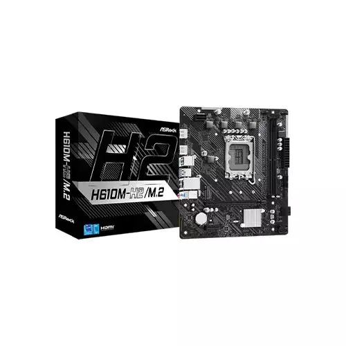 The ASROCK H610M-H2/M.2 is a high-performance micro ATX motherboard that supports the latest 14th, 13th, and 12th Gen Intel® Core™ processors with the LGA1700 socket. Its compact design, robust build, and excellent features make it a great choice for users seeking reliability and flexibility in their computing setups. This motherboard is designed to provide outstanding performance for both everyday computing and more intensive tasks, with support for Intel's Hybrid Technology and Turbo Boost Max 3.0 Technology, allowing for optimal CPU performance.
