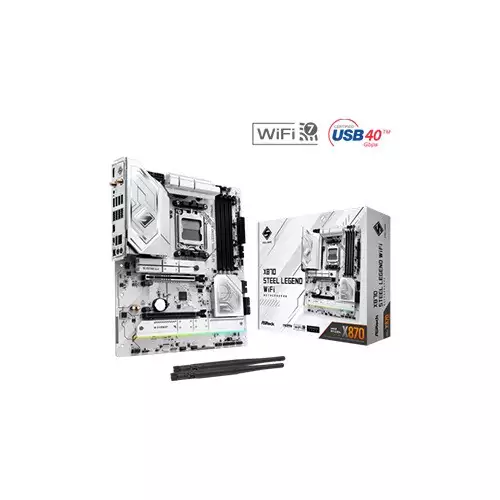 ASRock X870 STEEL LEGEND WiFi motherboard is designed to cater to high-performance gaming and professional computing needs. With support for the latest AMD Ryzen™ 9000, 8000, and 7000 Series processors, this motherboard ensures top-tier performance. It incorporates advanced connectivity, cutting-edge storage solutions, and a robust power delivery system, making it an excellent choice for enthusiasts and professionals alike.