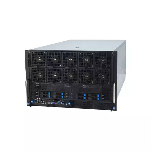 Asus ESC N8A-E12 AMD EPYC 9004 GPU Server is a high-performance server designed for enterprise workloads, AI computing, and large-scale data processing. Equipped with dual AMD EPYC 9004 series processors (4th Generation) with 3D V-Cache technology, it delivers exceptional multi-threaded performance and computational efficiency. Each CPU supports up to 3TB of DDR5 4800/4400 RDIMM or 3DS RDIMM memory across 12 channels per processor, allowing for maximum flexibility and scalability. Storage capabilities include 10 hot-swap 2.5" drive bays with support for NVMe, SATA, and SAS*, and two M.2 Gen5 x4 links, making it ideal for high-speed data-intensive applications. Networking is robust with dual 10GbE LAN ports and a dedicated management port for remote administration. The server features a 7U chassis with redundant 3000W 80 PLUS Titanium power supplies for reliability and efficiency. Front and rear I/O provide multiple USB ports, VGA, LAN, and easy-to-read LED indicators for power, location, and system status. With support for GPUs and PCIe expansion, the Asus ESC N8A-E12 ensures top-tier performance, scalability, and reliability for enterprise-grade operations in Bangladesh.