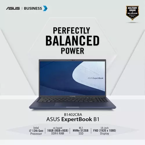 Get your hands on the ASUS ExpertBook B1 B1402CBA-NK3884 Core i7 12th Gen FHD Laptop at Tech Land BD.
