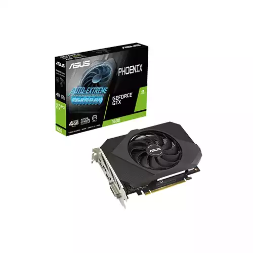 Phoenix graphics cards pack as much performance as possible into a compact design that offers a wide range of compatibility with small chassis. Limited space begs an efficient cooling system, and the Phoenix GeForce GTX 1630 delivers with a powerful Axial-tech fan. Whether you're upgrading an outdated card or building your first gaming rig, the Phoenix is a potent package that delivers latest-gen performance.A large Axial-tech fan features a smaller hub that facilitates longer blades and a barrier ring to increase downward air pressure.Auto-Extreme Technology is an automated manufacturing process that sets new standards in the industry by allowing all soldering to be completed in a single pass. This reduces thermal strain on components and avoids the use of harsh cleaning chemicals, resulting in less environmental impact, lower manufacturing power consumption, and a more reliable product overall.ASUS GPU Tweak III is more intuitive and feature-rich than ever before. A revamped interface offers greater accessibility by integrating core functions into a centralized dashboard, and our Voltage-Frequency tuner has been overhauled to make overclocking even easier. Additional goodies like 0dB fan technology, automatic profile swapping, a fully customizable on-screen display, and logging capabilities ensure that you get the most out of your graphics card.Each card must meet rigorous performance and reliability standards before it ships. Performance and stress tests are run with the latest chart-topping titles like Fortnite, League of Legends, Overwatch, and PlayerUnknown's Battlegrounds. We also carry out reliability trials that include a 144-hour stability test and a series of 3DMark benchmarking runs to ensure the card performs well when pushed to the limits.The mounting bracket of the Phoenix has been beefed up with 304 Stainless Steel that is harder and more resistant to corrosion.Perfect proportions maximize compatibility with the latest chassis.