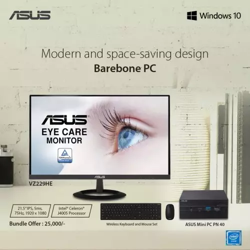Asus Ultracompact Mini PC PN40 with Asus VZ229HE & Wireless Mouse Keyboard Combo