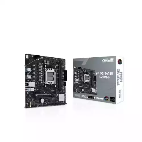 Asus PRIME B650M-F DDR5 AM5 mATX Motherboard is a compact yet powerful motherboard designed for AMD Ryzen 7000, 8000, and 9000 series processors. Utilizing the AMD B650 chipset, it supports the latest DDR5 memory, allowing for faster data processing and system responsiveness. This motherboard is ideal for those who require high performance in a smaller form factor, making it a suitable choice for both gaming and professional setups.