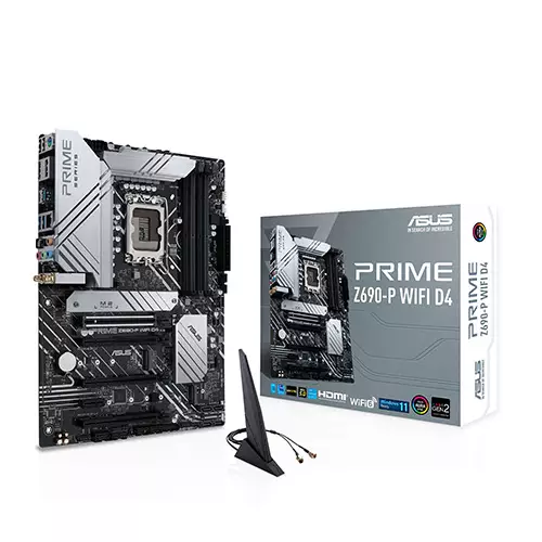 The ASUS PRIME Z690-P WIFI D4 Motherboard from ASUS. Designed for both business professionals and gamers, this motherboard offers robust performance whether you are looking to push the limits of raw power or build a streamlined machine for everyday tasks. An Intel Z690 chipset rests at the heart of this motherboard, giving you access to an LGA 1700 socket, four dual-channel DDR4 RAM slots, four SATA III ports, and three M.2 interfaces. Install a wide range of graphics and utility cards with a multitude of expansion slots including one PCIe 5.0 x16, one PCIe 4.0 x16, two PCIe 3.0 x16, and one PCIe 3.0 x1. An array of USB ports and headers allow you to connect resource-demanding peripherals such as external drives and more with USB 3.2 Gen 1 and Gen 2 Type-A Ports. The USB 3.2 Gen 2x2 Type-C port provides greater power for devices like audio interfaces and mass storage devices. Bluetooth 5.2 technology allows you to connect wireless devices such as speakers and controllers for a cable-free experience. Wi-Fi 6 (802.11ax) networking allows you to connect to wireless access points, or use the integrated Realtek 2.5 Gigabit Ethernet port if you prefer a wired connection so you can easily access cloud storage or stream your favorite media. The ASUS PRIME Z690-P WIFI D4 Motherboard supports Windows 10 (64-Bit) as well as Windows 11 (64-Bit) right out of the box.