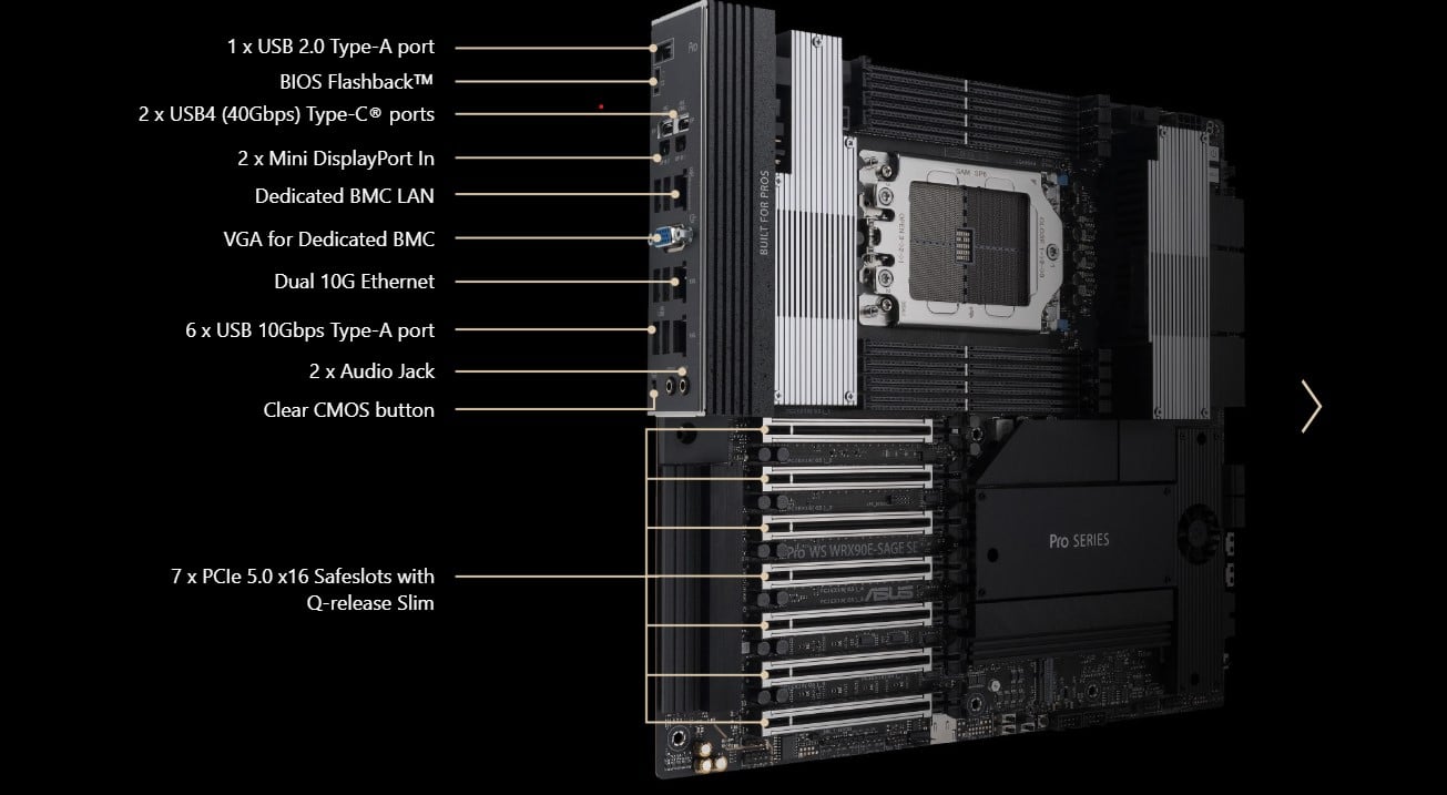 AMD Ryzen Threadripper PRO 9000 & 7000 WX-Series Processors 6 x PCIe 5.0 x16 slots 1 x PCIe 5.0 x16 slot (x8 mode) |