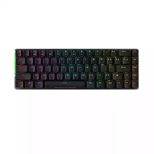 ROG Falchion NX 65% wireless mechanical gaming keyboard with 68 keys, wireless Aura Sync lighting, interactive touch panel, keyboard cover case, ROG NX switches, and up to 450-hour battery life.