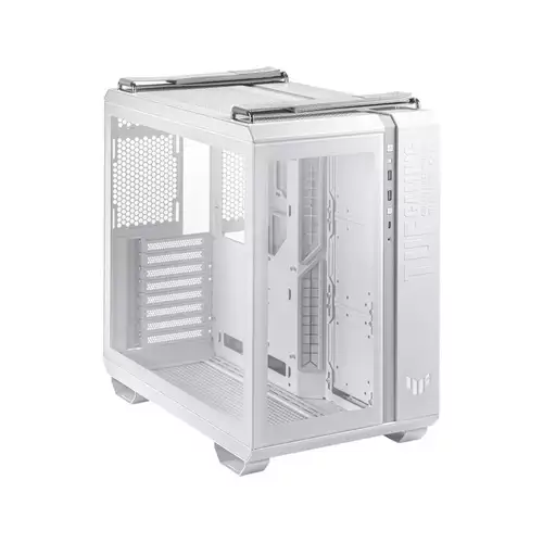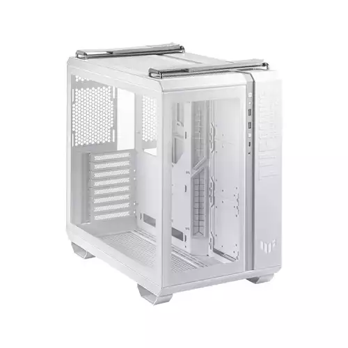 The ASUS TUF Gaming GT502 White Full Tower Casing is a top-of-the-line computer case that is built to impress. It is designed with tempered glass front and left side panels that allow you to show off your system's components in style. The case is built to stay cool even under the most demanding conditions, with support for up to 13 fans and liquid cooling setups that can accommodate radiators up to 360mm at the top and side or 120mm at the rear of the case. The GT502 supports ATX, Micro-ATX, and Mini-ITX motherboards and can hold up to four 2.5/3.5" drive bays and eight expansion slots for adapter cards. The case incorporates three vertical slots and comes with a vertical GPU mount and graphics card holder to eliminate sag, supporting graphics cards up to 15.7", CPU coolers up to 6.4", and PSUs up to 7.9". The front panel features a USB-C 3.2 Gen 2 port, two USB-A 3.2 Gen 1 ports, and a 3.5mm combo audio port. The GT502 also features a dual-chamber chassis design that allows for independent cooling zones for the CPU and GPU, as well as panoramic tempered glass panels that showcase your build. The case is fully modular, with removable panels and mounts for easy hardware installation and tailored builds. The toolless side panels can be removed with the press of a button hidden on the rear of the chassis, and woven straps allow for easy transport of the case even when packed with hardware. The ASUS TUF Gaming GT502 White Full Tower Casing is a flexible and scalable design that can accommodate a wide range of builds, whether you prefer a modest setup or a fully-loaded battle station. With its impressive features and stunning design, this case is the perfect choice for gamers, creative professionals, and anyone who demands the very best in computer hardware. You can find this case at Techland BD shop.