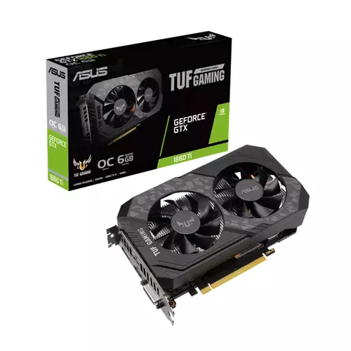 The Asus Tuf GTX 1660 Ti EVO OC Graphics Card stacks durability, compatibility, and performance to bring reliable 3D horsepower to the TUF Gaming ecosystem. Stand-out features include Auto-Extreme Technology, TUF compatibility testing, and two fans with space-grade lubricant and IP5X dust resistance.The Asus Tuf GTX 1660 Ti EVO OC Graphics Card is built with the breakthrough graphics performance of the award-winning NVIDIA Turing architecture.Broadcast your gameplay with the Asus Tuf GTX 1660 Ti EVO OC Graphics Card dedicated hardware encoder that is optimized for Open Broadcaster Software (OBS).Dust is enemy number one for fans. It’s easy to clean the blades, but taking the fan apart to remove dust that has made its way inside is not a simple task. Passing the IP5X certification means the housing is safe from nasty particulates, so you'll never need that deep clean.Auto-Extreme Technology is an automated manufacturing process that sets new standards in the industry by allowing all soldering to be completed in a single pass. This reduces thermal strain on components and avoids the use of harsh cleaning chemicals, resulting in less environmental impact, lower manufacturing power consumption, and a more reliable product overall.
