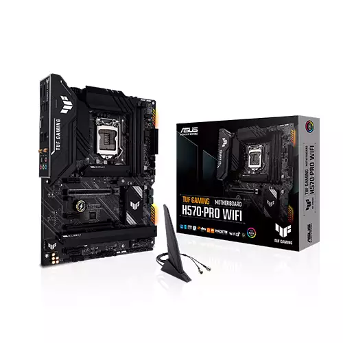 ASUS TUF GAMING H570-PRO WIFI takes all the essential elements of the latest Intel processors and combines them with game-ready features and proven durability. Engineered with military-grade components, an upgraded power solution and a comprehensive cooling system, this motherboard offers rock-solid, stable performance for marathon gaming. Aesthetically, TUF GAMING H570-PRO WIFI sports the new TUF Gaming logo, and incorporates simple geometric design elements to reflect the dependability and stability that defines the TUF Gaming series.