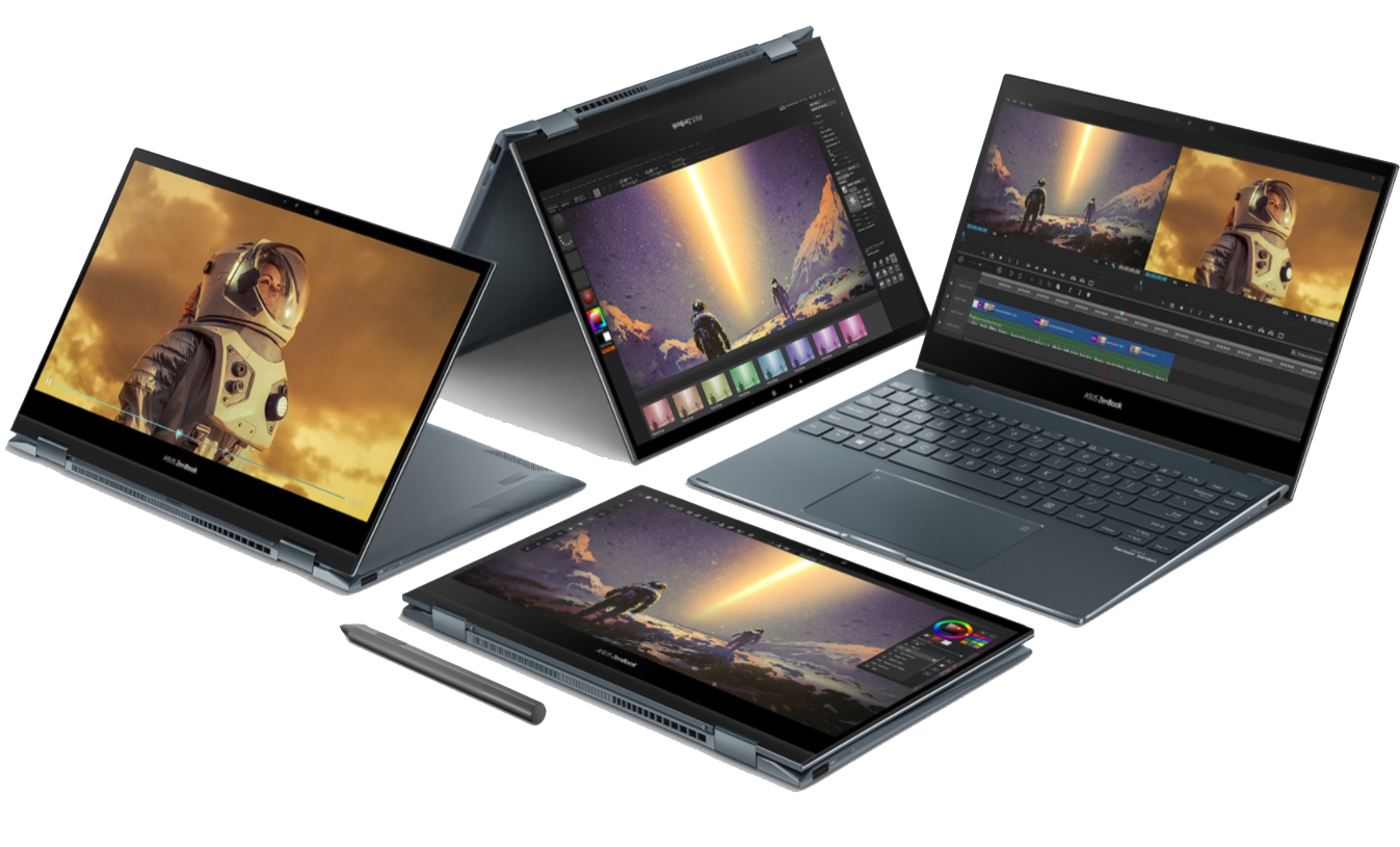 The ASUS ZenBook Flip 13 UX363EA features a 360° ErgoLift Hinge, which allows you to use it in different modes, such as laptop, tent, stand, or tablet. With the ASUS NumberPad 2.0, the touchpad doubles as an LED-lit numeric keypad. The 13.3" display features a Full HD 1920 x 1080 resolution and a 16:9 aspect ratio. The screen has multi-touch support and features a 3.9mm NanoEdge design for an optimal viewing experience. The display features 4096 pressure level support for the included ASUS Pen Stylus. Specs-wise, it's built with an 11th Gen 2.80GHz Intel Core i7 1165G7 Quad-Core processor, 16GB of LPDDR4x RAM, and Intel Iris Plus Graphics. For storage, it's equipped with a single 512GB NVMe PCIe M.2 SSD. Connect to the internet via Wi-Fi 6 (802.11ax) and you can also use compatible wireless accessories with Bluetooth 5.0. Other integrated features include Thunderbolt 4, HDMI, and USB Type-A. The operating system installed is Windows 10.