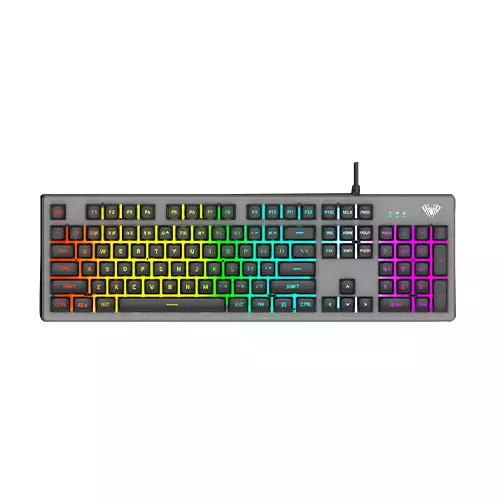 One-key dual-control scroll bar, adjust the volume or switch the light effect just by gently pulling. Ice blue backlight. The full keyboard adopts ice blue light effect, 20 kinds of cool light effects, showing the cool ice blue light luminous effect. AULA independently researched and developed the mechanical switch, the single switch has life span of about 60 million times, and the AULA has an independent blue/black/brown/red switch, which is comfortable to the touch and durable to use. Metal panel. Appearance edging process design, one-piece metal panel, scratch-resistant and wear-resistant, stable and thick material, comfortable and comfortable, simple and high-grade appearance. All keys have no conflict, no matter which keys are pressed at the same time, they can respond instantly. Ergonomic design. Six rows of keycaps with four-level height, more in line with the law of finger movement, streamlined distribution of high and low keycaps, comfortable typing, not easy to fatigue.