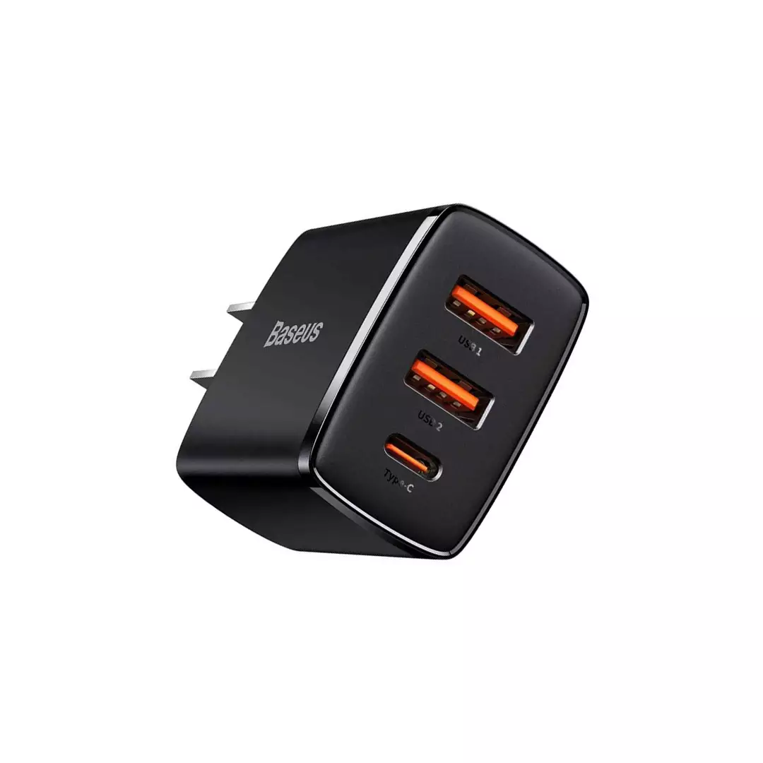 BASEUS COMPACT QUICK CHARGER PORTABLE 2U+C THREE PORTS 30W WALL CHARGING ADAPTER